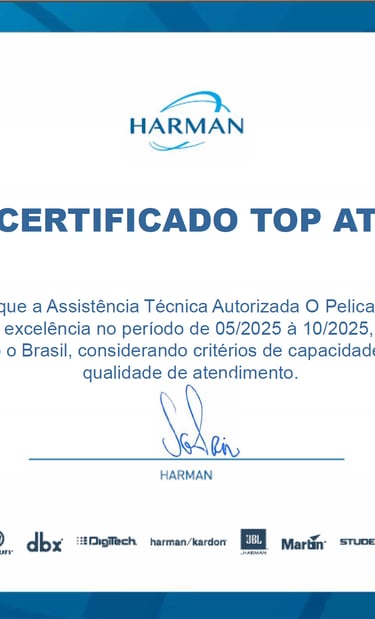 Somos a assistência técnica oficial JBL, dedicados a cuidar do seu equipamento com a qualidade que a marca merece.